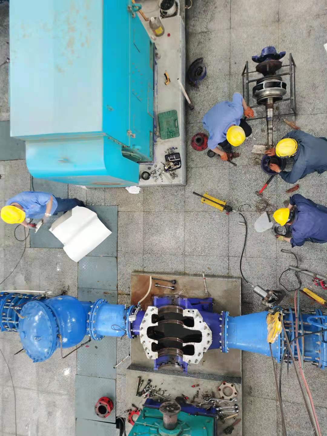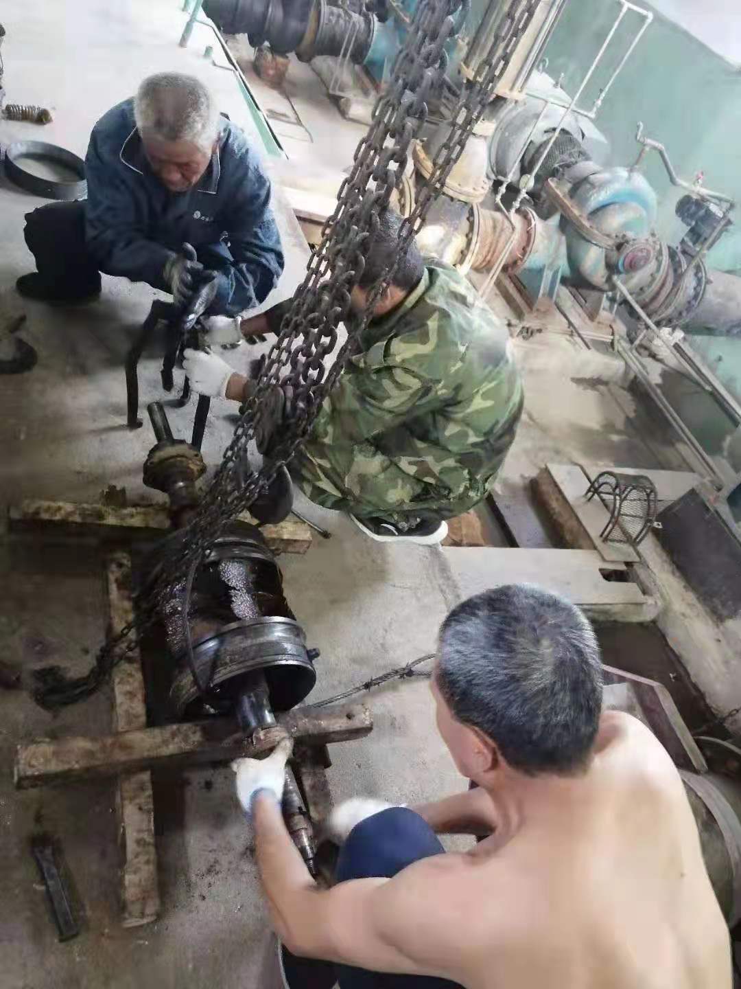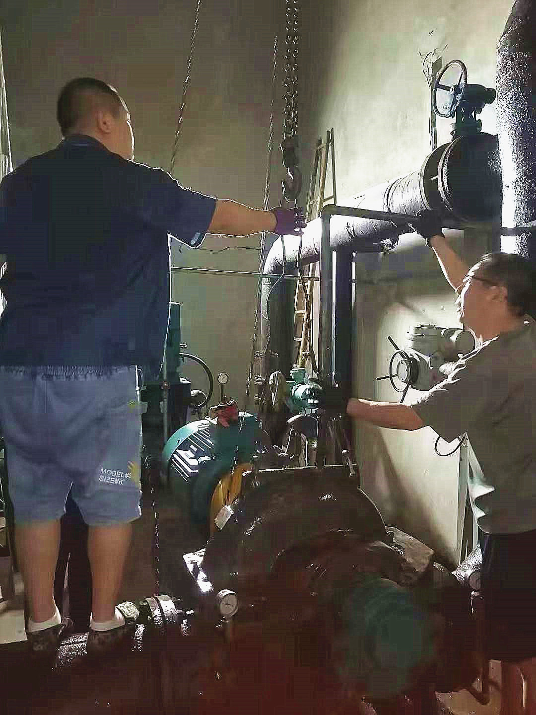 因三灣管道施工,從6月中旬開始庫區(qū)斷供,水廠全力抽取江水,水中雜物順流堵泵現(xiàn)象頻發(fā)。泵站值班人員隨時監(jiān)測運行數(shù)據(jù),及時拆卸泵殼清掏雜物以保證設備高效運行。其中愛河泵站5臺機組連續(xù)運行,堵泵情況最為嚴重。由于泵站屋頂?shù)桶L不暢,室內(nèi)溫度超過五十攝氏度。為了維持取水效率,他們冒著中暑風險開泵搶修作業(yè),充分展現(xiàn)了供水人愛崗敬業(yè),服務社會的精神風貌。