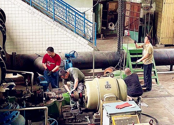 四道溝水源為保證水質(zhì),汛期前對反應池沉淀池進行清淤工作,對一級泵站設備進行維護保養(yǎng)大修。由于四道溝水源江心井吸水籠頭損壞,不能有效攔截江中雜物,致使一級泵站取水水泵經(jīng)常堵塞,值班員和維修人員只能打開泵蓋進行人工清掏,最多時每天清掏3次。由于四道溝、SW新運轉泵站運轉車間內(nèi)機組運行散發(fā)熱量,致使車間內(nèi)溫度高于室外,最高時達到40度,值班員只能強忍高溫,對設備進行操作和維修。維修班更是頂著炎炎烈日完成日常維修,更換接梨樹泵站4號機組DN150出水水門、更換損壞的接觸器、檢修四道溝水源一泵站3號機組DN300出水水門。